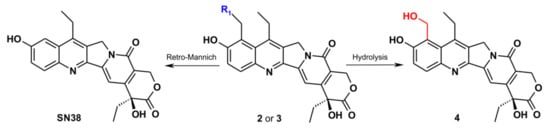 - Naumczuk, B.; Kawęcki, R.; Bocian, W.; Bednarek, E.; Sitkowski, J.; Kozerski, L. Regioselective alkylation reaction of the 2′deoxycitidine with 9-aminomethyl derivatives of SN38. J. Mol. Struct. 2019, 1176, 298–302. [Google Scholar] [CrossRef]