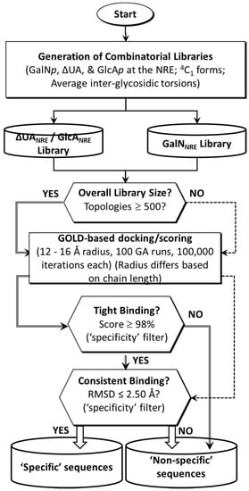 - Sankaranarayanan, N.V.; Desai, U.R. Toward a robust computational screening strategy for identifying glycosaminoglycan sequences that display high specificity for target proteins. Glycobiology 2014, 24, 1323–1333. [Google Scholar] [CrossRef] [PubMed]