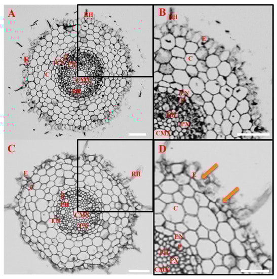 - Smallwood, M.; Beven, A.; Donovan, N.; Neill, S.J.; Peart, J.; Roberts, K.; Knox, J.P. Localization of cell wall proteins in relation to the developmental anatomy of the carrot root apex. Plant J. 1994, 5, 237–246. [Google Scholar] [CrossRef]