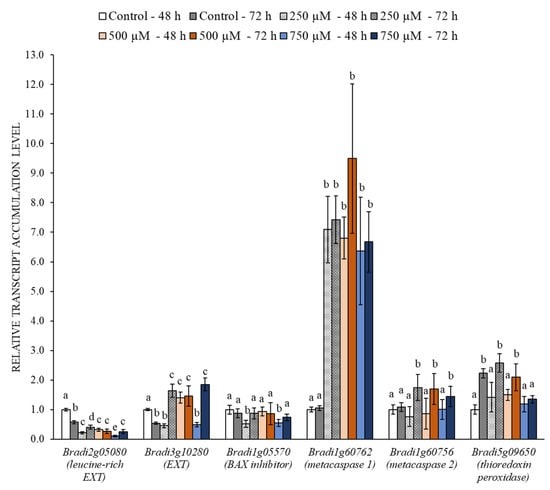2.4. Changes in the Expression of EXTs and Genes Associated with PCD