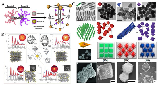 - Macfarlane, R.J.; Lee, B.; Jones, M.R.; Harris, N.; Schatz, G.C.; Mirkin, C.A. Nanoparticle Superlattice Engineering with DNA. Science 2011, 334, 204–208. [Google Scholar] [CrossRef] [Green Version]