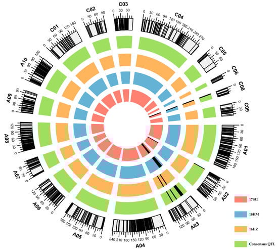 - Sosnowski, O.; Charcosset, A.; Joets, J. BioMercator V3: An upgrade of genetic map compilation and quantitative trait loci meta-analysis algorithms. Bioinformatics 2012, 28, 2082–2083. [Google Scholar] [CrossRef] [Green Version]