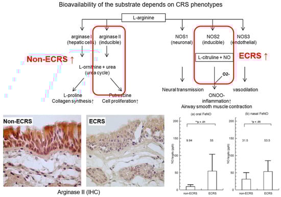 - Taruya, T.; Takeno, S.; Kubota, K.; Sasaki, A.; Ishino, T.; Hirakawa, K. Comparison of Arginase Isoform Expression in Patients with Different Subtypes of Chronic Rhinosinusitis. J. Laryngol. Otol. 2015, 129, 1194–1200. [Google Scholar] [CrossRef][Green Version]