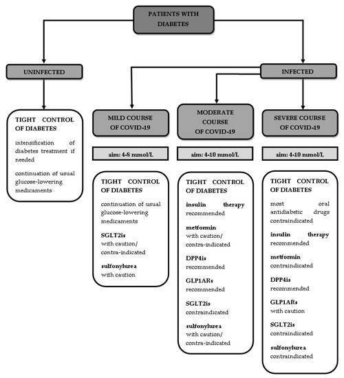 Chicago/Turabian StyleBielka, Weronika, Agnieszka Przezak, and Andrzej Pawlik. 2021. "Therapy of Type 2 Diabetes in Patients with SARS-CoV-2 Infection" International Journal of Molecular Sciences 22, no. 14: 7605. https://doi.org/10.3390/ijms22147605