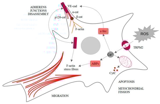 - Hecquet, C.M.; Ahmmed, G.U.; Malik, A.B. TRPM2 Channel Regulates Endothelial Barrier Function. Chem. Biol. Pteridines Folates 2009, 661, 155–167. [Google Scholar] [CrossRef]