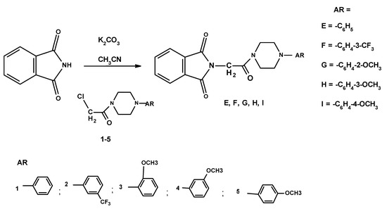 3.1.3. General Method for the Preparation of the 2-[2-oxo-2-[4-arylphenyl-1-piperazinyl]]ethyl-1H-isoindole-1,3(2H)-diones EI