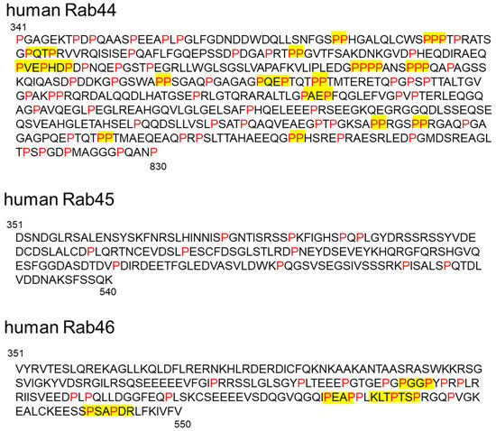 - Ogawa, K.; Kadowaki, T.; Tokuhisa, M.; Yamaguchi, Y.; Umeda, M.; Tsukuba, T. Role of the EF-hand and coiled-coil domains of human Rab44 in localisation and organelle formation. Sci. Rep. 2020, 10, 19149. [Google Scholar] [CrossRef]