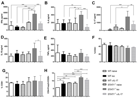 2.5. Enhanced Inflammatory Microenvironment in STAT1-/- Mice Is Controlled by IL-17 Blockade