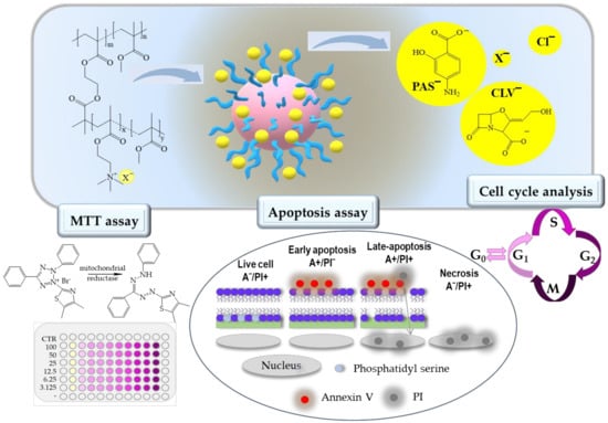 - Bielas, R.; Siewniak, A.; Skonieczna, M.; Adamiec, M.; Mielańczyk, Ł.; Neugebauer, D. Choline based polymethacrylate matrix with pharmaceutical cations as co-delivery system for antibacterial and anti-inflammatory combined therapy. J. Mol. Liq. 2019, 285, 114–122. [Google Scholar] [CrossRef]