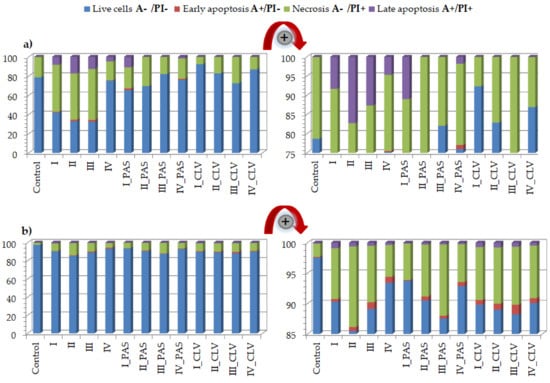 - Koopman, G.; Reutelingsperger, C.P.M.; Kuijten, G.A.M.; Keehnen, R.M.J.; Pals, S.T.; Van Oers, M.H.J. Annexin V for Flow Cytometric Detection of Phosphatidylserine Expression on B Cells Undergoing Apoptosis. Blood 1994, 84, 1415–1420. [Google Scholar] [CrossRef] [Green Version]
