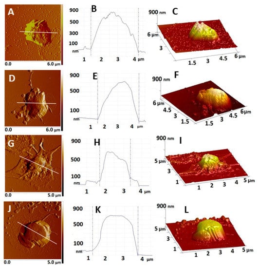 2.3. Atomic Force Microscopy on Platelets. Morphometric and Nanomechanical Characteristics of Platelets from Control and EPL Groups