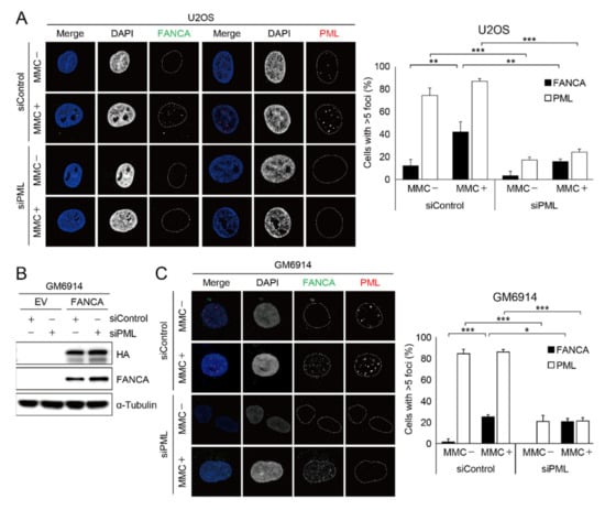 2.2. Damage-Induced FANCA Foci Formation Is Impaired in Cells with PML Depletion