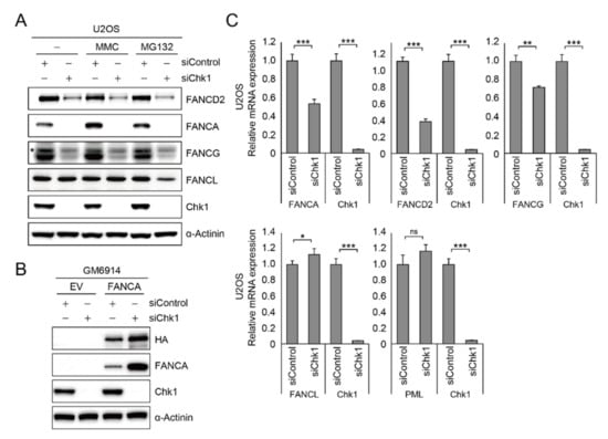 2.5. CHK1 Is Implicated in FA Gene Expression