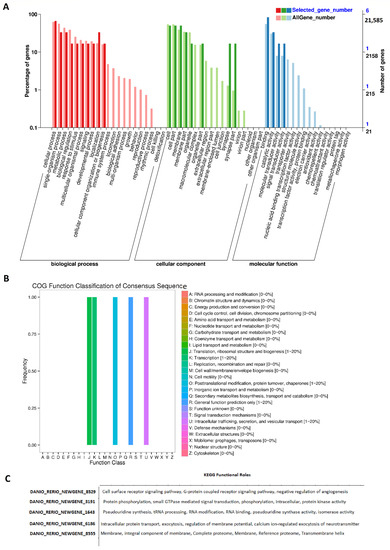 2.1. Rhythmically Expressed LncRNAs in the Zebrafish Pineal Gland, and Their GO, COG, and KEGG Analyses