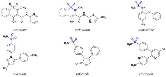 Examples of NSAIDs with the sulfonyl group in their structures.