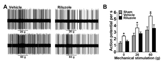 2.7. Riluzole Suppressed the Neural Activity in ION-CCI Rats