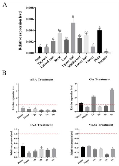 2.1. Expression Patterns of SmSPL6 in S. miltiorrhiza
