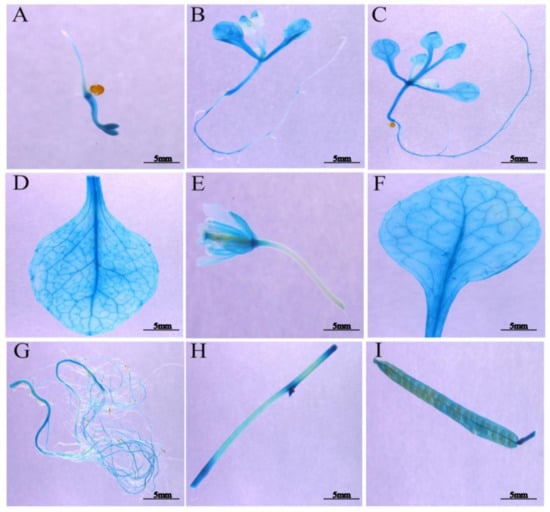 4.5. β-Glucuronidase (GUS) Histochemical Staining