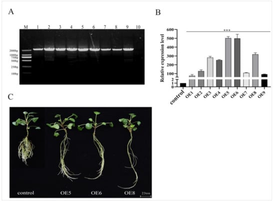 - Clough, S.J.; Bent, A.F. Floral dip: A simplified method for Agrobacterium-mediated transformation of Arabidopsis thaliana. Plant J. 1998, 16, 735–743. [Google Scholar] [CrossRef] [PubMed] [Green Version]