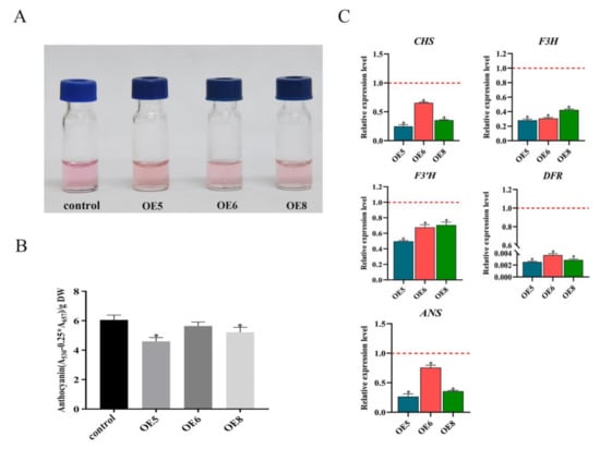 2.4. SmSPL6 Represses the Accumulation of Anthocyanin