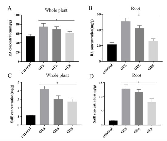 2.5. SmSPL6 Positively Regulates the Biosynthesis of RA and SalB