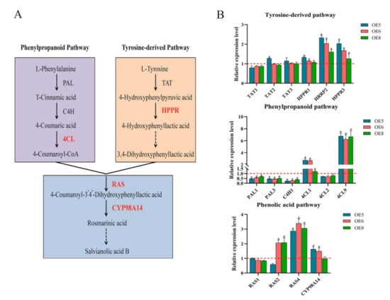 - Zhang, Y.; Yan, Y.P.; Wu, Y.C.; Hua, W.P.; Chen, C.; Ge, Q.; Wang, Z.Z. Pathway engineering for phenolic acid accumulations in Salvia miltiorrhiza by combinational genetic manipulation. Metab. Eng. 2014, 21, 71–80. [Google Scholar] [CrossRef] [PubMed]