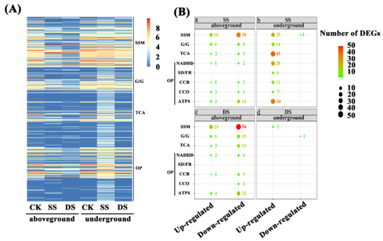 3.2. Modulation of Energy Metabolism Pathways under SS and DS