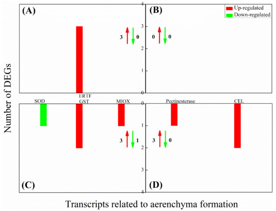 2.5. DEGs Related to Internal Gas Diffusion: Aerenchyma