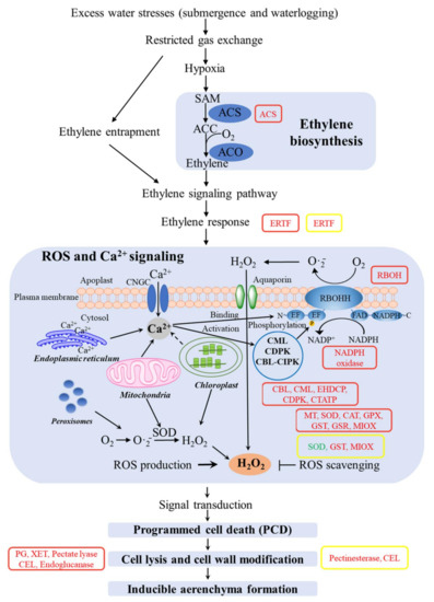 - Khan, M.I.R.; Trivellini, A.; Chhillar, H.; Chopra, P.; Ferrante, A.; Khan, N.A.; Ismail, A.M. The significance and functions of ethylene in flooding stress tolerance in plants. Environ. Exp. Bot. 2020, 179, 104188. [Google Scholar] [CrossRef]