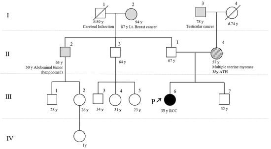 - Hol, J.A.; Jongmans, M.C.J.; Littooij, A.S.; de Krijger, R.R.; Kuiper, R.P.; van Harssel, J.J.T.; Mensenkamp, A.; Simons, M.; Tytgat, G.A.M.; van den Heuvel-Eibrink, M.M.; et al. Renal cell carcinoma in young FH mutation carriers: Case series and review of the literature. Fam. Cancer 2020, 19, 55–63. [Google Scholar] [CrossRef]