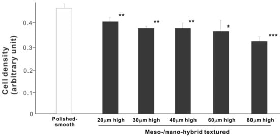 - Kubo, K.; Tsukimura, N.; Iwasa, F.; Ueno, T.; Saruwatari, L.; Aita, H.; Chiou, W.-A.; Ogawa, T. Cellular behavior on TiO2 nanonodular structures in a micro-to-nanoscale hierarchy model. Biomaterials 2009, 30, 5319–5329. [Google Scholar] [CrossRef]