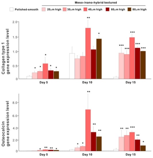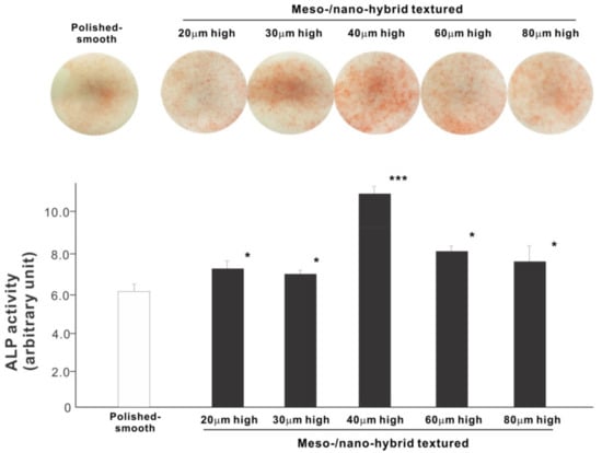 - Saruta, J.; Sato, N.; Ishijima, M.; Okubo, T.; Hirota, M.; Ogawa, T. Disproportionate Effect of Sub-Micron Topography on Osteoconductive Capability of Titanium. Int. J. Mol. Sci. 2019, 20, 4027. [Google Scholar] [CrossRef] [Green Version]