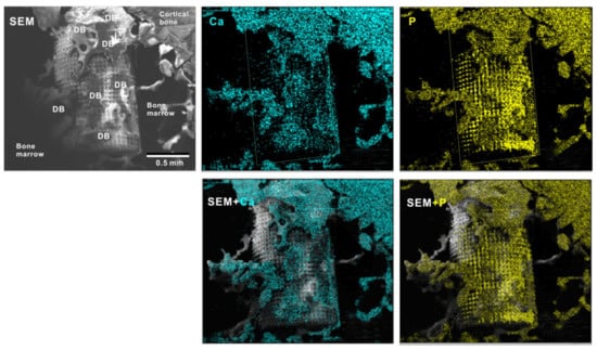 4.9. Morphological and Elemental Analyses of Implant/Tissue Complex
