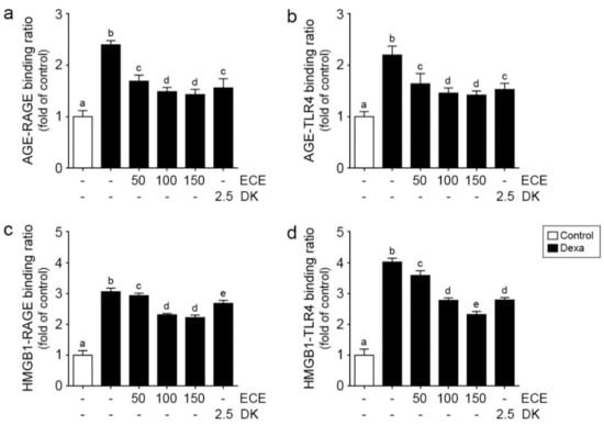 2.1. ECE and DK Decreased Bindings between RAGE/TLR4 and Their Ligands in Muscle of Dexa-Treated Animals