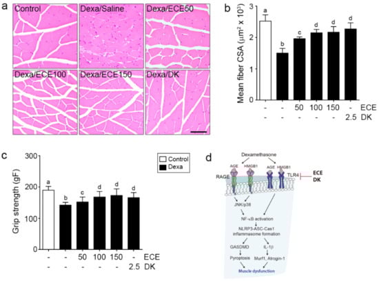 2.4. ECE and DK Attenuated Muscle Atrophy and Improved Grip Strength