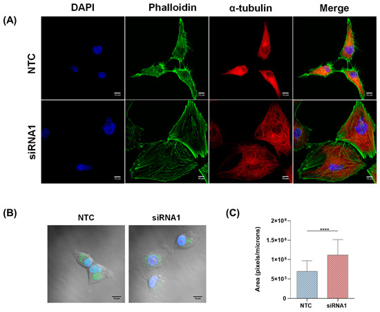 2.5. LOXL3 Downregulation in U87MG Cells Altered Morphology and Cytoskeletal Rearrangement