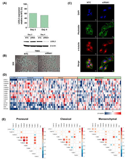 2.6. LOXL3 Silencing in T98G Cells and Human Glioblastoma Samples