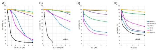 2.1. Susceptibility of AML Cell Lines Grown in the Absence or Presence of HS-5 Stroma Cells to AC-4-130 and Venetoclax