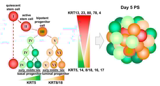 - Karantza, V. Keratins in health and cancer: More than mere epithelial cell markers. Oncogene 2011, 30, 127–138. [Google Scholar] [CrossRef] [Green Version]