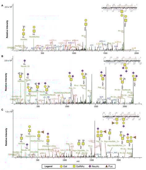 4.4. High-Pressure Liquid Chromatography Tandem Mass Spectrometry Glycopeptide Analysis