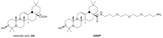 Finally, OA and OADP (Figure 12) were dissolved in DMSO at 5 mg/mL and stored at −20 °C. Prior to treatment, the stock solution was diluted in cell culture medium to the appropriate concentration for each experiment.