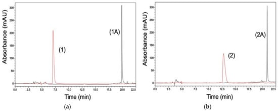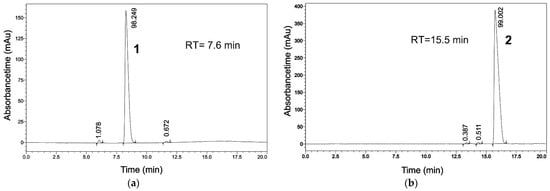 HPLC chromatograms of diastereomers: (a) 1 and (b) 2 (for HPLC conditions, refer to the SM).