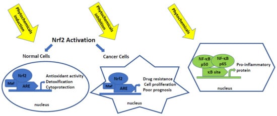 Thus, induction of Nrf2 activation by phytochemicals in normal cells or at the early stages of carcinogenesis is an important strategy of chemoprevention. In cancer cells, the naturally occurring inhibitors of this pathway are desired.