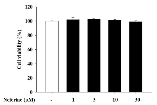 2.1. Cell Viability in Human Keratinocyte (HaCaT) Cells under Different Concentrations of Neferine Treatment