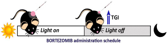 - Wagner, P.M.; Prucca, C.G.; Velazquez, F.N.; Sosa Alderete, L.G.; Caputto, B.L.; Guido, M.E. Temporal regulation of tumor growth in nocturnal mammals: In vivo studies and chemotherapeutical potential. FASEB J. 2021, 35, e21231. [Google Scholar] [CrossRef] [PubMed]
