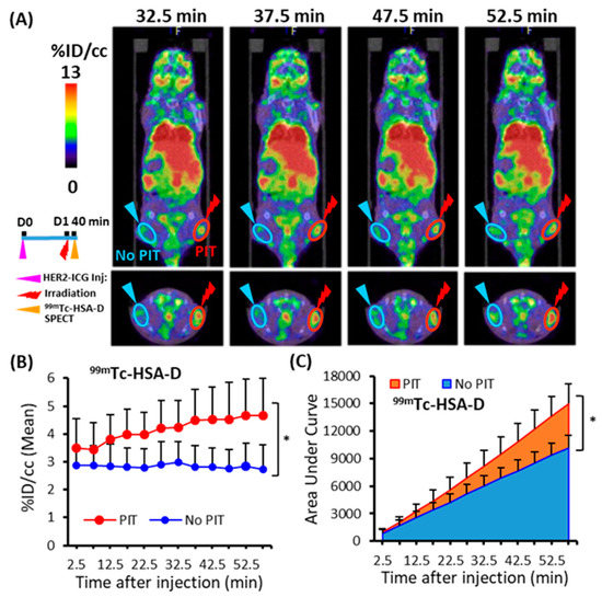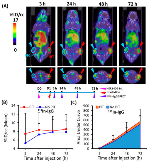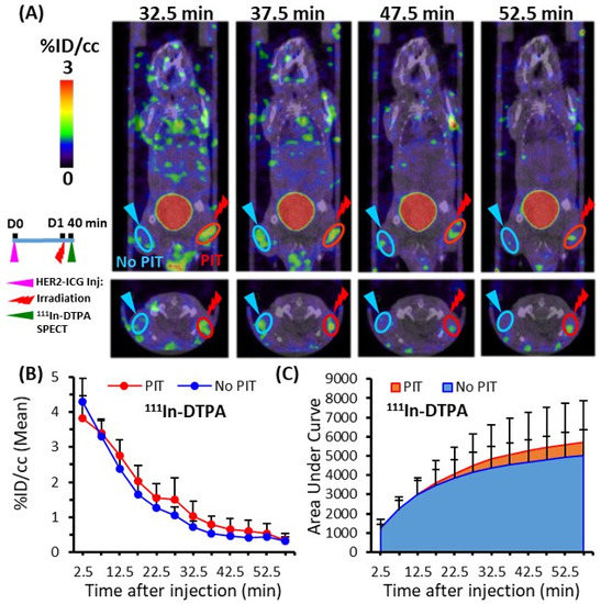 111In-IgG, a high-molecular-weight (147,111 Da) SPECT probe—to quantify the SUPR effect induced by PIT. We set the suitable acquisition time for dynamic study as 60 min to assess the uptake of the radioprobes after the preliminary
