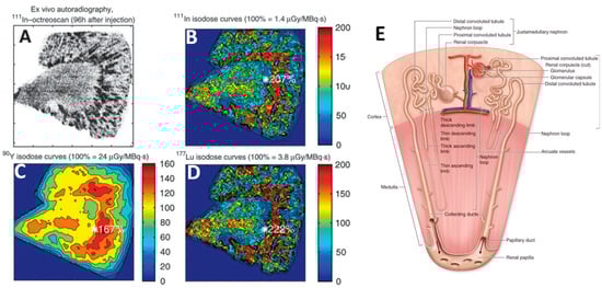 - Konijnenberg, M.; Melis, M.; Valkema, R.; Krenning, E.; De Jong, M. Radiation dose distribution in human kidneys by octreotides in peptide receptor radionuclide therapy. J. Nucl. Med. 2007, 48, 134–142. [Google Scholar]