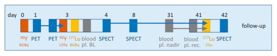 - Konijnenberg, M.W.; de Jong, M. Preclinical animal research on therapy dosimetry with dual isotopes. Eur. J. Nucl. Med. Mol. Imaging 2011, 38, 19–27. [Google Scholar] [CrossRef] [PubMed][Green Version]