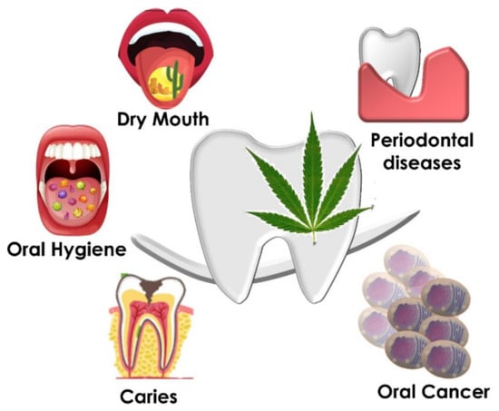 - Grafton, S.E.; Huang, P.N.; Vieira, A.R. Dental treatment planning considerations for patients using cannabis. J. Am. Dent. Assoc. 2016, 147, 354–361. [Google Scholar] [CrossRef]