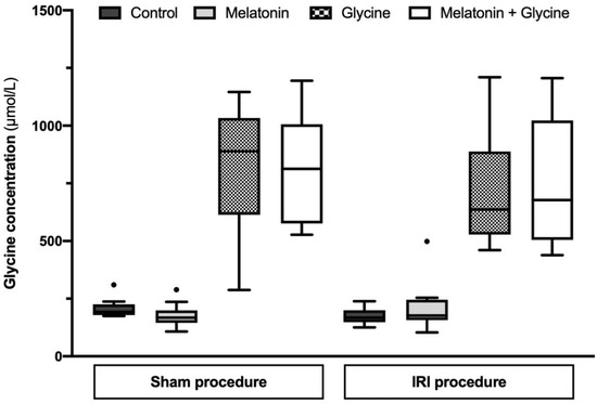 - Petrat, F.; Drowatzky, J.; Boengler, K.; Finckh, B.; Schmitz, K.J.; Schulz, R.; de Groot, H. Protection from glycine at low doses in ischemia-reperfusion injury of the rat small intestine. Eur. Surg. Res. 2011, 46, 180–187. [Google Scholar] [CrossRef] [PubMed]